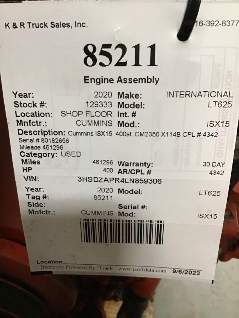 Cummins X15 400st, CM2350 X114B CPL # 4342 Serial # 80182656